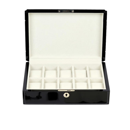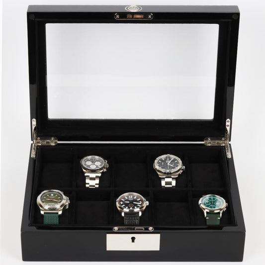 HQ Luxury Wooden Display Watch Box 10 Watch Slots Jet Black