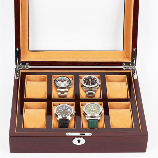 HQ Luxury Watch Box, 8 Watch Slot Smooth Wood