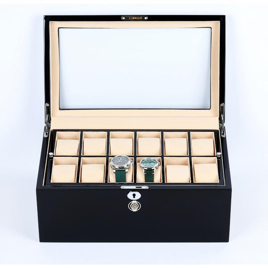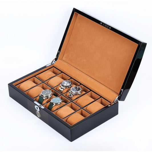 HQ Luxury Watch Box 12 Watch Slots Jet Black