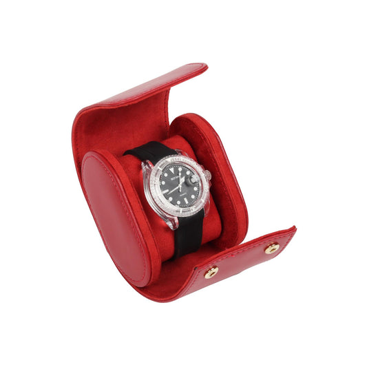 HQ Single Watch Genuine Leather Travel Case/Roll - Velvet Red