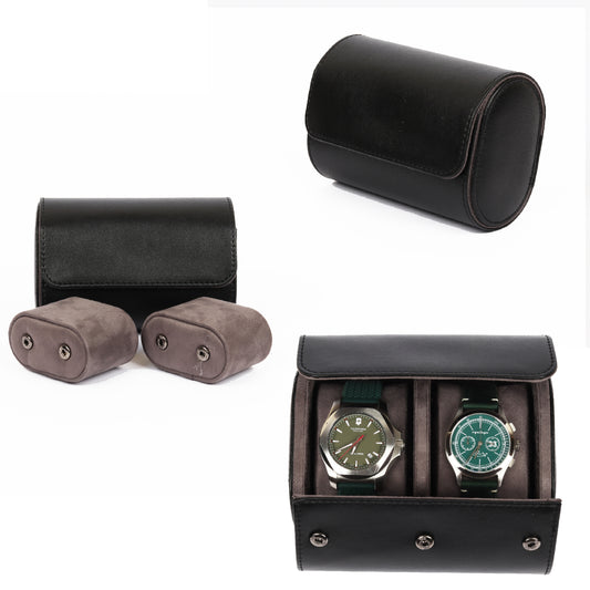 HQ Watch Case 2 Slots Travel Watch Roll Black