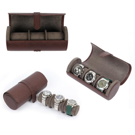 HQ Watch Roll 3 Slot Luxury Travel Watch Case - Black