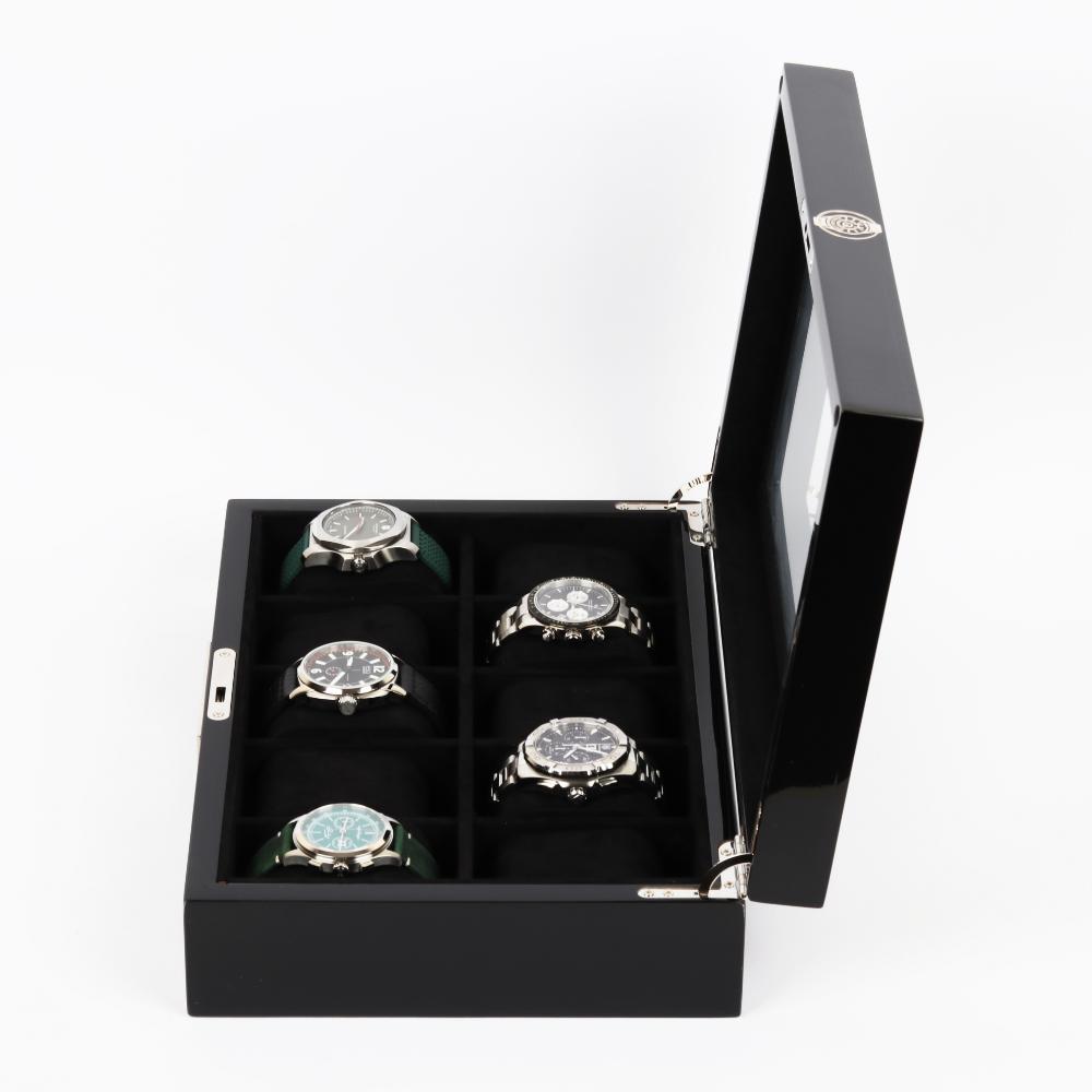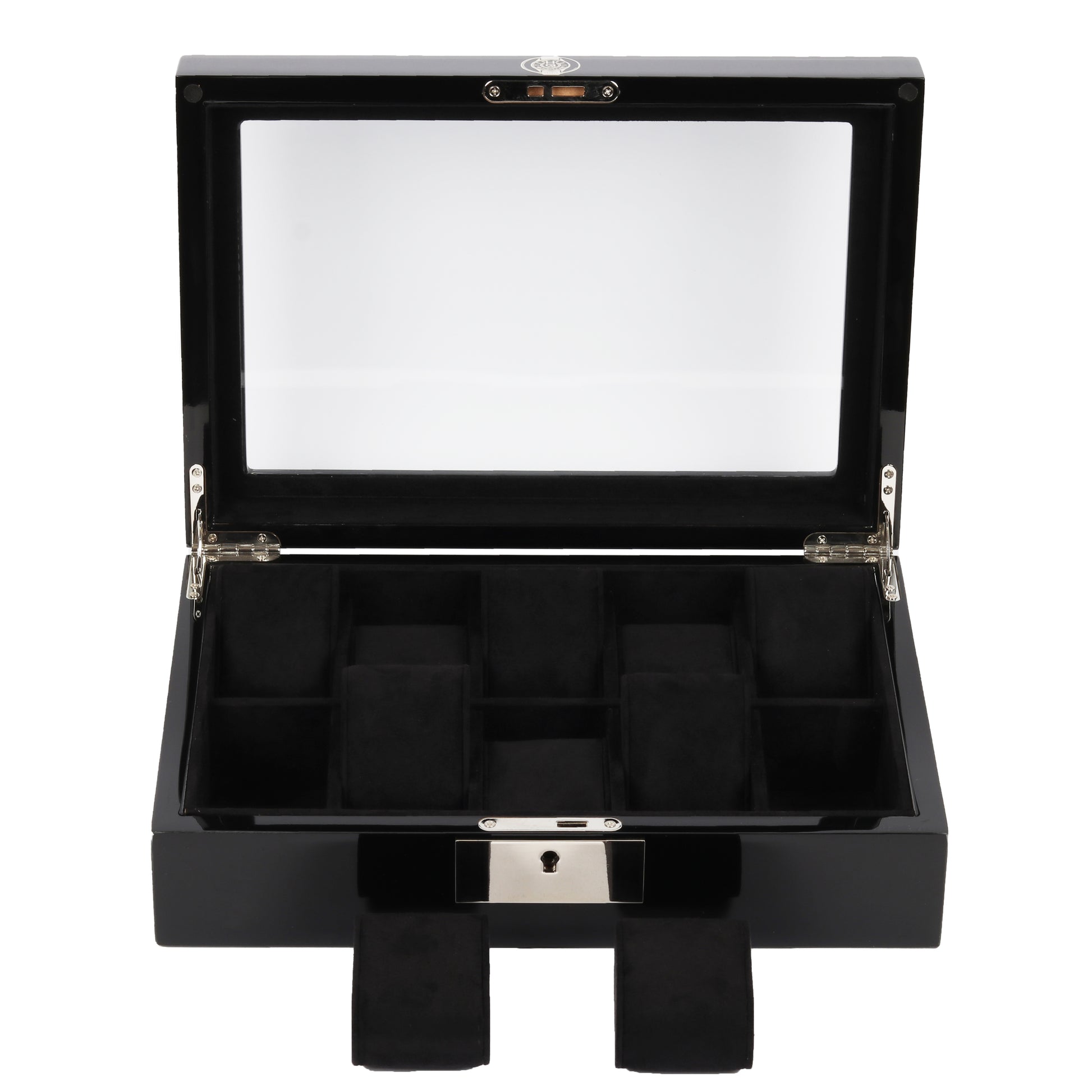 HQ Luxury Wooden Display Watch Box 10 Watch Slots Jet Black