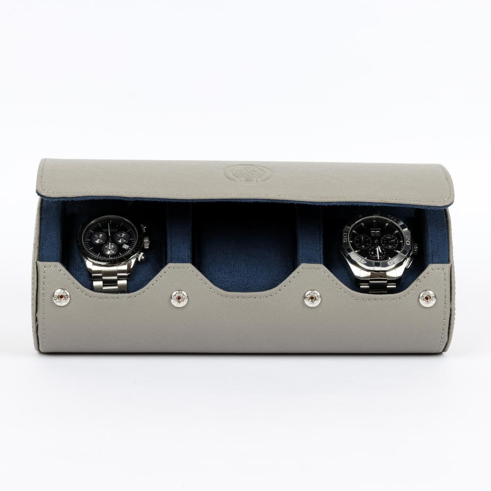 HQ Watches Care Grey Genuine Leather Watch Case Roll for 3 Watches