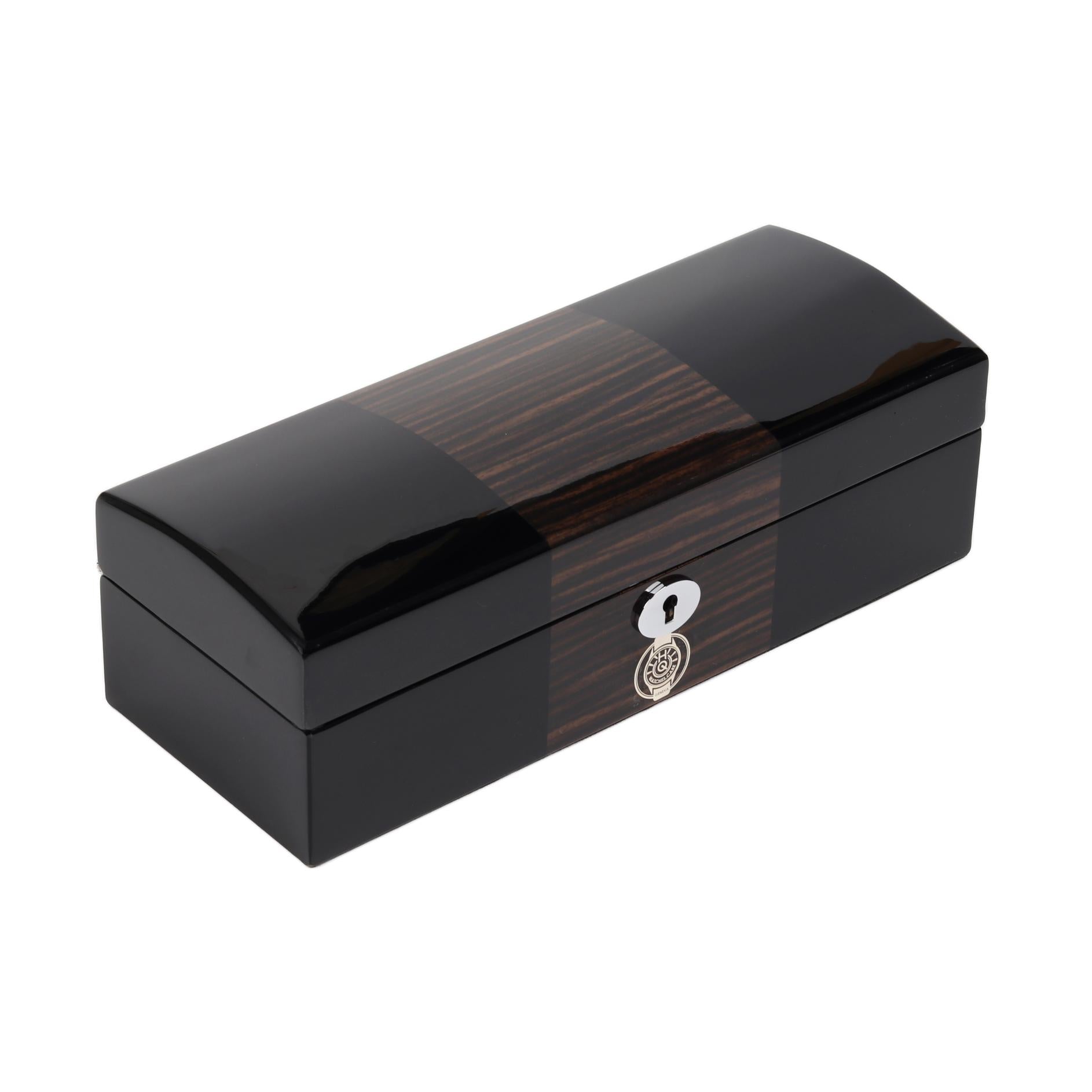 High-End Luxury: Elevate your watch collection with this exquisite jet black wooden watch box, perfect for showcasing your high-end timepieces.