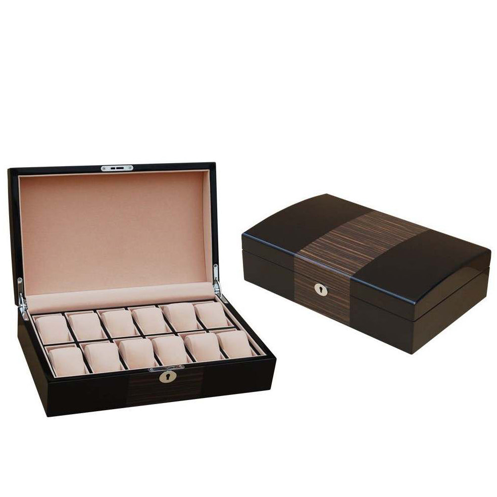 HQ Macassar Lacquer Premium Wooden Watch Box for 12 Watches.